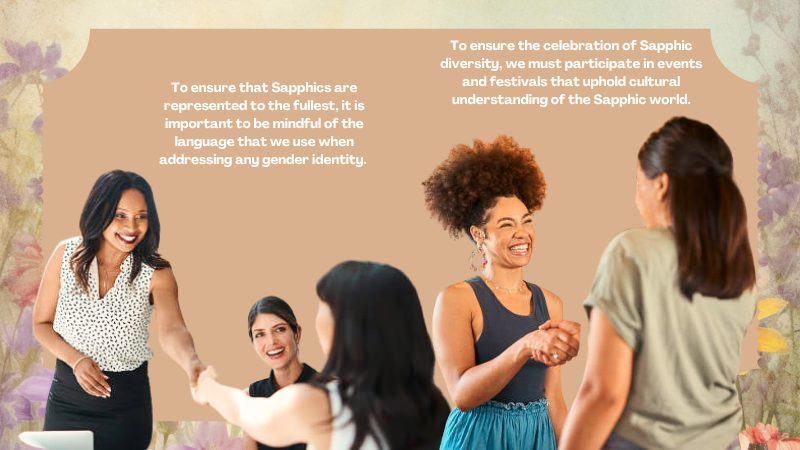 To ensure the celebration of Sapphic diversity, we must participate in events and festivals that uphold cultural understanding of the Sapphic world.