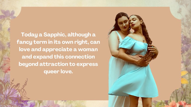 Today a Sapphic, although a fancy term in its own right, can love and appreciate a woman and expand this connection beyond attraction to express queer love.