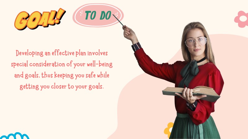 Developing an effective plan involves special consideration of your well-being and goals, thus keeping you safe while getting you closer to your goals.