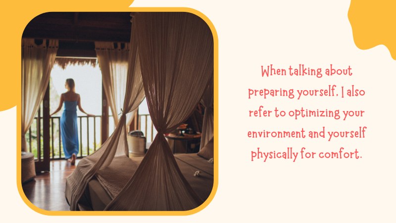 When talking about preparing yourself, I also refer to optimizing your environment and yourself physically for comfort.