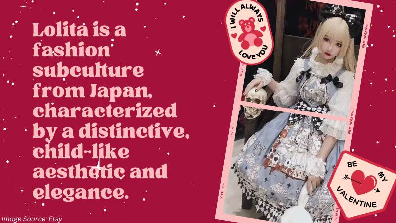 Lolita is a fashion subculture from Japan, characterized by a distinctive, child-like aesthetic and elegance. The fashion style is inspired by Rococo and Victorian-era clothing, incorporating elements such as petticoats, lace, and ribbons. Participants in the Lolita fashion subculture often wear full-skirted dresses, blouses, and accessories such as bonnets, parasols, and tights.