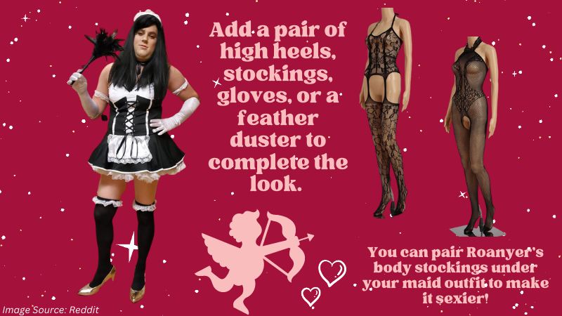 A maid costume is a stereotypical outfit of a female servant, typically a domestic worker. The outfit comprises an apron, a dress or skirt, and headwear. Accessorizing your maid outfit can add an extra touch of style and sexiness. Add a pair of high heels, stockings, gloves, or a feather duster to complete the look. Additionally, you can pair Roanyer’s body stockings under your maid outfit to make it sexier!