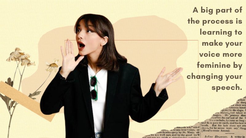 A big part of the process is learning to make your voice more feminine by changing your speech. This means paying attention to what you say, how, and when. It also means being mindful of your tone—you don’t want to sound too sweet or harsh. And finally, it means knowing what words sound more masculine and which sound more feminine so that you can choose them wisely!