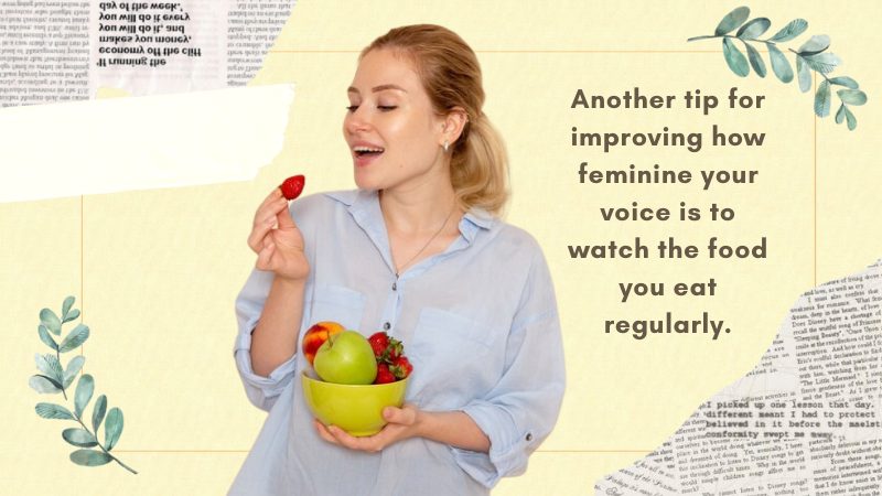 You can also consider using mouthwash twice daily or rinsing with warm water after brushing your teeth. Another tip for improving how feminine your voice is to watch the food you eat regularly. Foods like nuts, seeds, fruits, vegetables, meat, and fish are all good choices. Because they contain plenty of protein essential for producing a higher-pitched voice when speaking aloud!