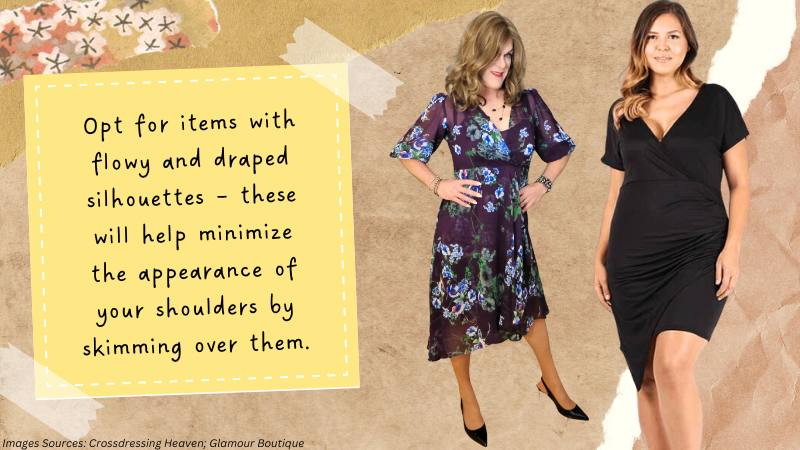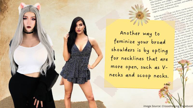As an MTF crossdresser, one of the unsurpassed things you can do to feminize your broad shoulders is to choose clothing that creates a slimming illusion. Opt for items with flowy and draped silhouettes – these will help minimize the appearance of your shoulders by skimming over them.