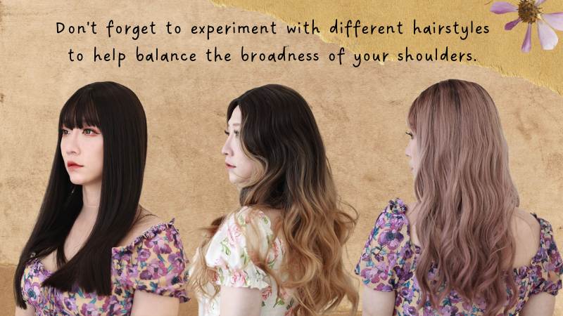 Experiment with different hairstyles to help balance out the broadness of your shoulders