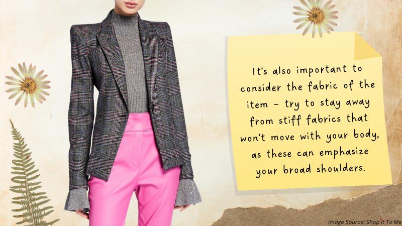 One strategy that has helped me immensely is to look for pieces that are a size or two larger than I usually wear. This allows for more space around the shoulders and helps to give a more feminine silhouette. It’s also important to consider the fabric of the item – try to stay away from stiff fabrics that won’t move with your body, as these can emphasize your broad shoulders. Instead, opt for fabrics with more stretch or softer textures that will drape over your frame and give you a more feminine look.