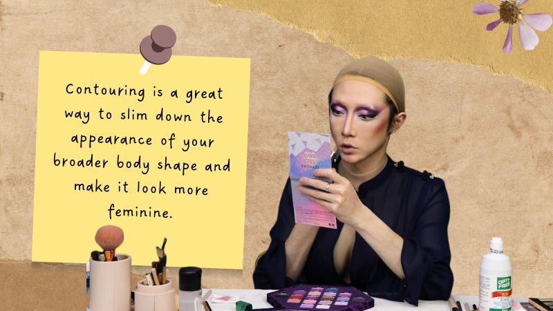 As a crossdresser, another essential tool in feminizing broad shoulders is makeup. You can use makeup to create the illusion of a more slender shape by drawing attention away from your shoulders and onto your face. Contouring is a great way to slim down the appearance of your broader body shape and make it look more feminine. Try using light shades on the sides of your face to give an illusion of narrowing and darker shades on the parts you want to emphasize, such as your cheeks and lips.