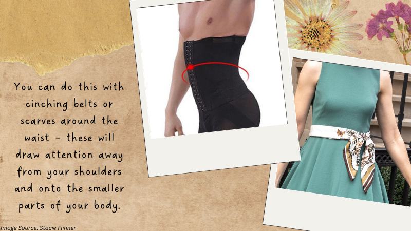 Another great way to feminize your broad shoulders as an MTF crossdresser is by accentuating your waist. You can do this with cinching belts or scarves around the waist – these will draw attention away from your shoulders and onto the smaller parts of your body. Belts are also a great way to create an hourglass silhouette and add definition to your curves.