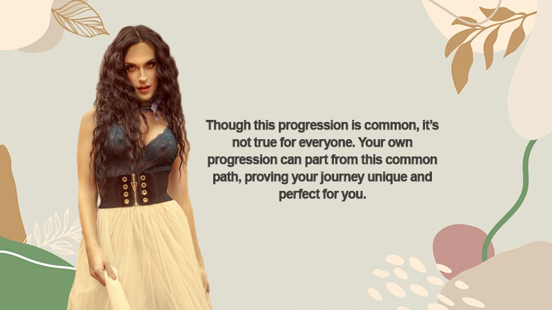 - Dresses usually come after. At this stage, you will start to see yourself in your full feminine form.