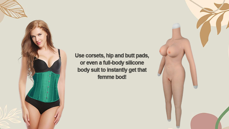 Use corsets, hip and butt pads, or even a full-body silicone body suit to get that femme bod instantly!