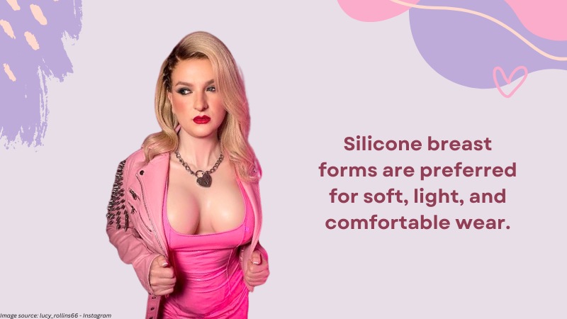Silicone breast forms are made for a comfortable feel and a feminine look. The material is filled with gel to give it a soft and natural look.