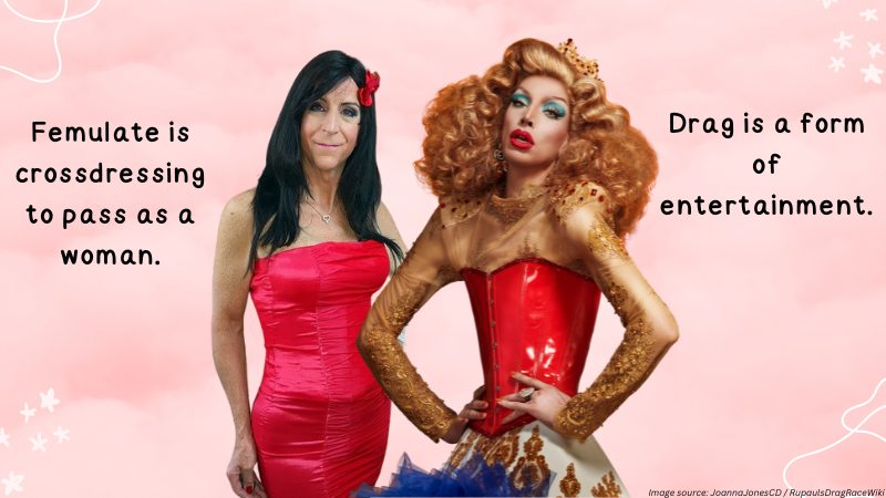 It’s true that both femulate and drag may entail self-expression and celebrate LGBTQ+ pride.