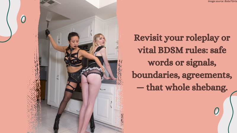 Revisit your roleplay or vital BDSM rules: safe words or signals, boundaries, agreements—that whole shebang.