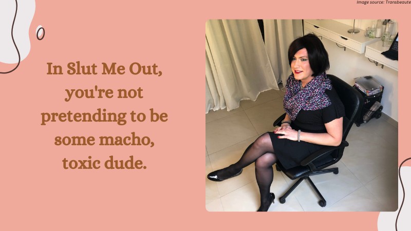 In Slut Me Out, you’re not pretending to be some macho, toxic dude. Free your soul, leave all that crap behind! At least when you’re in the privacy of your bedroom, you should let go of the ‘shoulds.