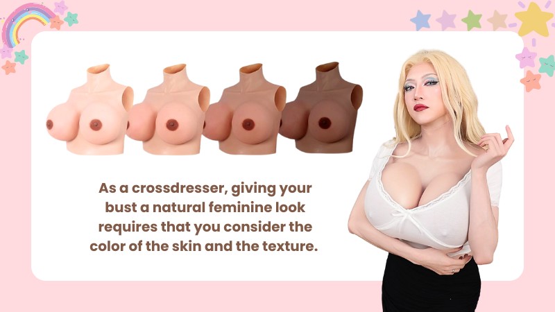 As a crossdresser, giving your bust a natural feminine look requires that you consider the color of the skin and the texture. Whether white or black, the best type of breast form is the one that will match your skin perfectly. That is why we design fake boobs for each and every skin tone.