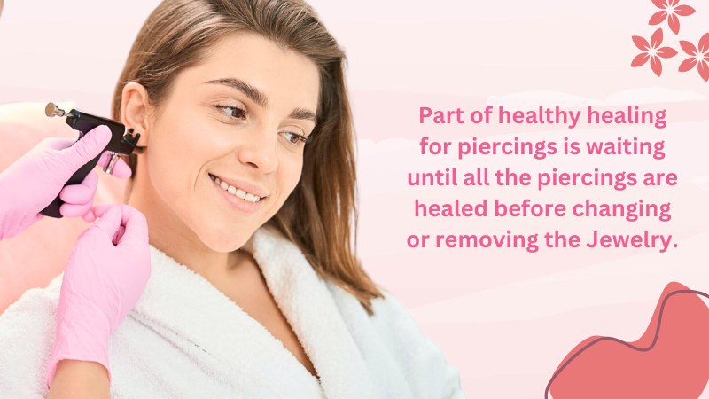 Part of healthy healing for piercings is waiting until all the piercings are healed before changing or removing the Jewelry. Removing the Jewelry prematurely will likely lead to infections and the closure of the piercing hole.