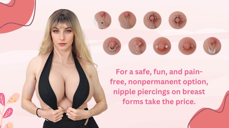 For a safe, fun, and pain-free, nonpermanent option, nipple piercings on breast forms take the price. For instance, silicone breast forms come with the option of nipple piercings.