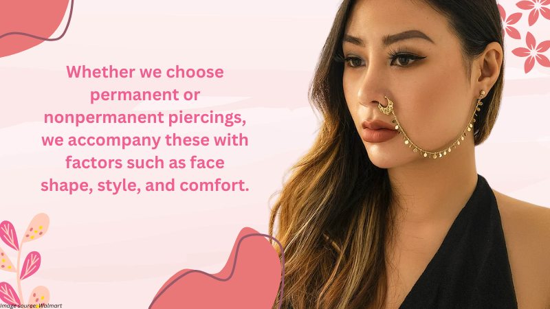 Even so, whether we choose permanent or nonpermanent piercings, we accompany these with factors such as face shape, style, and comfort. Embracing our feminine journey beautifully means experimenting with different piercing options. All these shed light on the most beautiful parts of ourselves and womanhood overall.