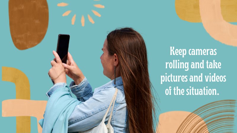If a threatening encounter is occurring, keep cameras rolling and take pictures and videos of the situation.