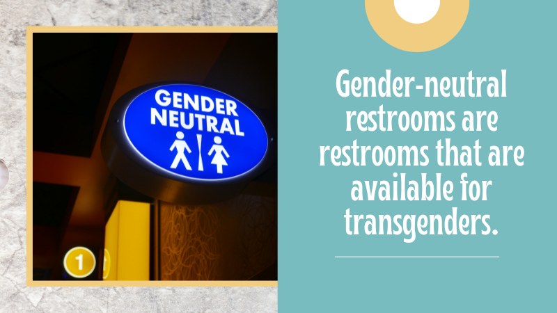 Gender-neutral restrooms are restrooms that are available for transgenders who don’t feel comfortable using a restroom for a particular gender.
