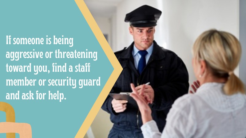 3. If someone becomes aggressive or threatening, find a staff member or security guard and ask for help
