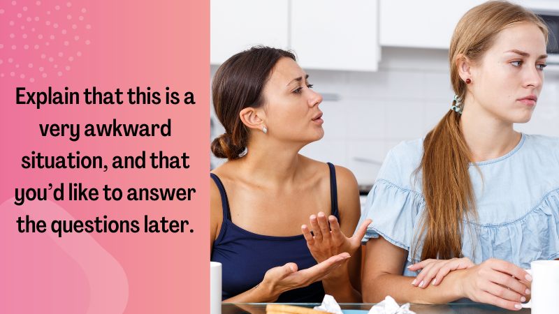 Explain that this is a very awkward situation and that you’d like to answer the questions later.