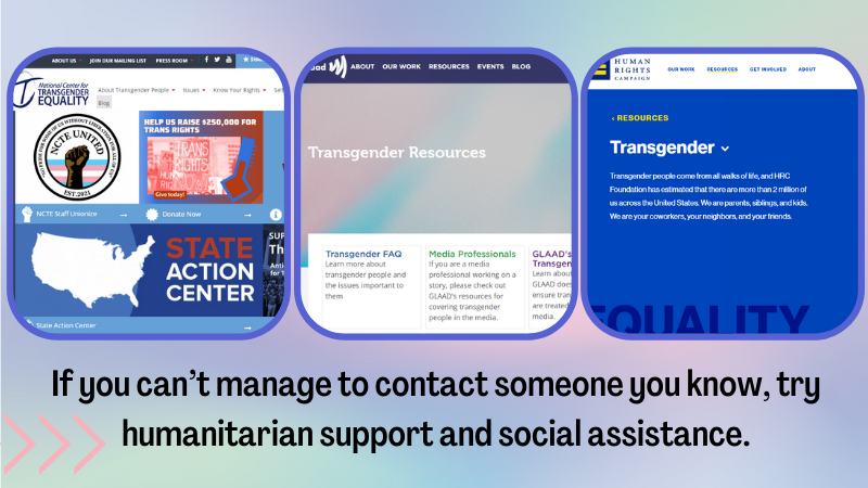 If you can’t manage to contact someone you know, try humanitarian support and social assistance.