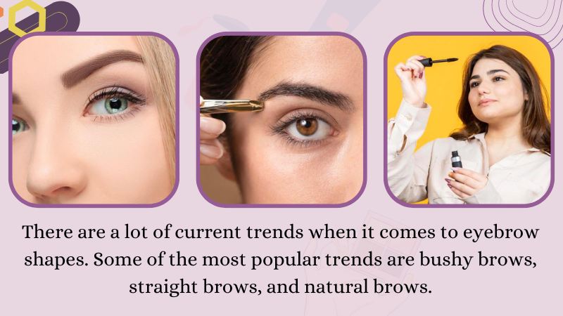There are a lot of current trends when it comes to eyebrow shapes. Some of the most popular trends are bushy brows, straight brows, and natural brows.
