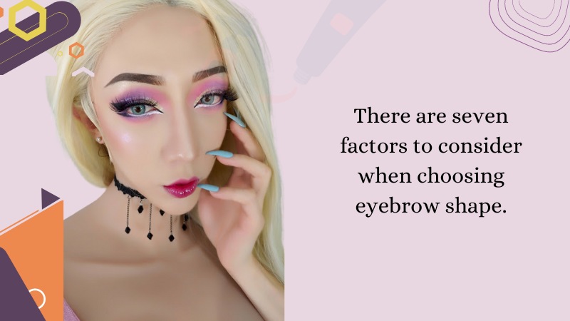 There are seven factors to consider when choosing eyebrow shape: face shape, brow bone structure, skin type, age, lifestyle, personal preferences, and current trends.