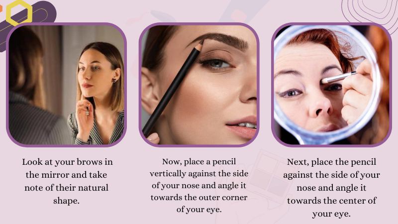 Now, place a pencil vertically against the side of your nose and angle it towards the outer corner of your eye. Wherever the pencil hits, your brow is where your brow bone begins.