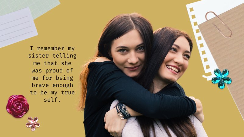I remember my sister telling me that she was proud of me for being brave enough to be my true self. That meant the world to me.