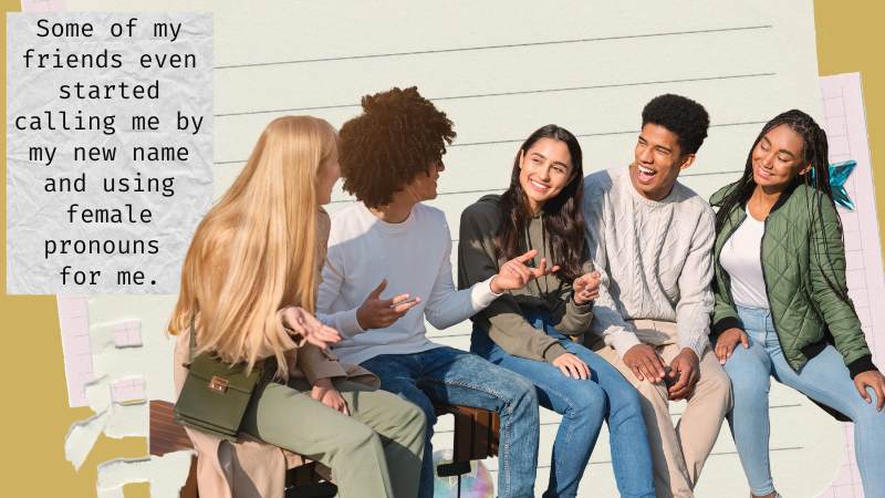 Some of my friends even started calling me by my new name and using female pronouns for me. It felt so good to finally be referred to as the person that I am.
