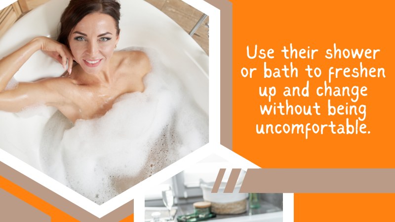 A trusted friend’s house is the best option because you can use their shower or bath to freshen up and change without being uncomfortable.