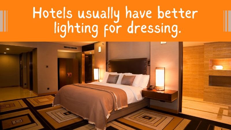 One advantage of staying in hotels is that they have big rooms. It also gives you ample time to get dressed and a bathroom to remove your makeup.