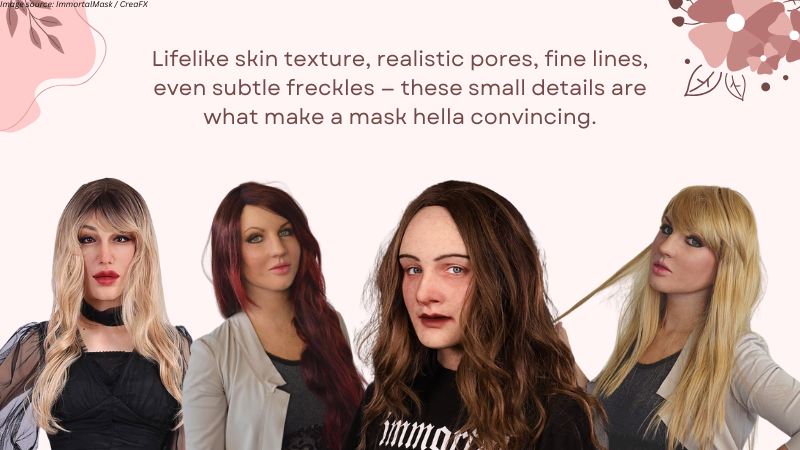 Lifelike skin texture, realistic pores, fine lines, even subtle freckles — these small details are what make a mask hella convincing. So, manufacturers’ attention to detail should be your priority. You can go from “Everyday You” to a whole new person with just one mask.