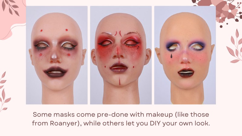 If you’re a makeup lover like me, you want to know how well your silicone face mask plays with cosmetics. Some masks come pre-done with makeup (like those from Roanyer), while others let you DIY your own look.