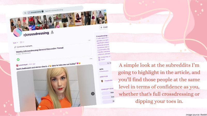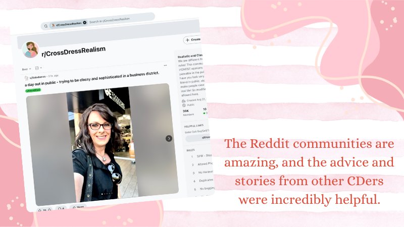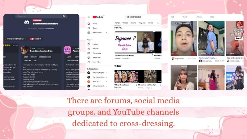 There are forums, social media groups, and YouTube channels dedicated to cross-dressing, offering a range of content from fashion advice to personal stories of overcoming fear and self-acceptance. Some great places to look include: