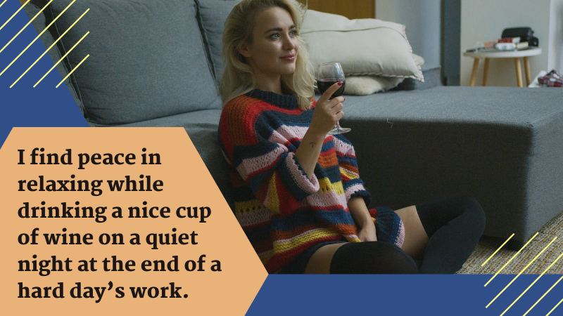 I find peace in relaxing in my cami while drinking a nice cup of wine on a quiet night at the end of a hard day’s work, for instance.