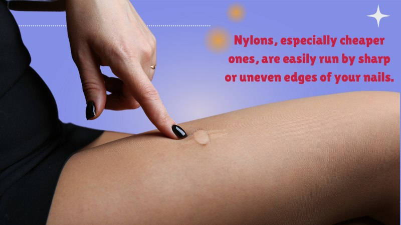 Nylons, especially cheaper ones, are easily run by sharp or uneven edges of your nails.