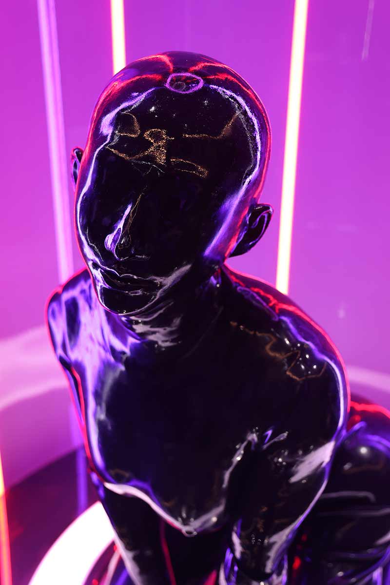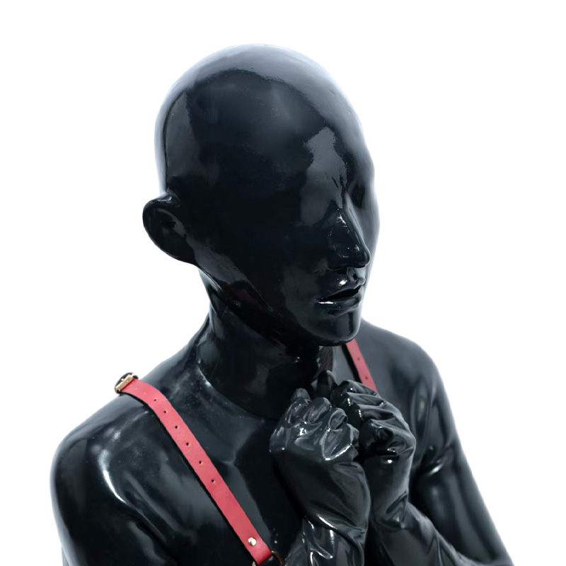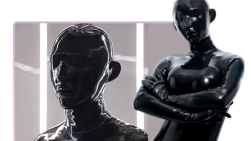 The first thing you’ll notice is the shine. The glossy black surface mirrors the look of latex but is actually made from premium silicone. That means: