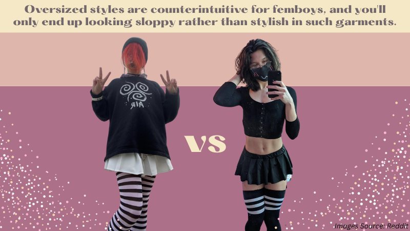 It doesn’t matter your body size or shape; fashion should be enjoyable for everyone. If you’re a femboy looking to make a statement with your style, avoid oversized clothes at all costs.