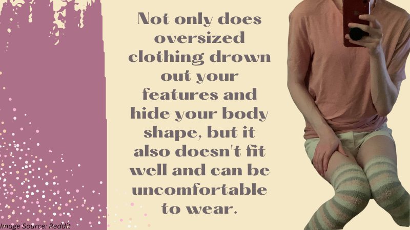 It’s best to avoid oversized clothing altogether – they are unflattering and uncomfortable and can also be expensive to buy. Instead, find clothes that fit your body perfectly and make you look wonderful. This way, you won’t have to spend extra money on oversized items and will still be able to express yourself with fashion!