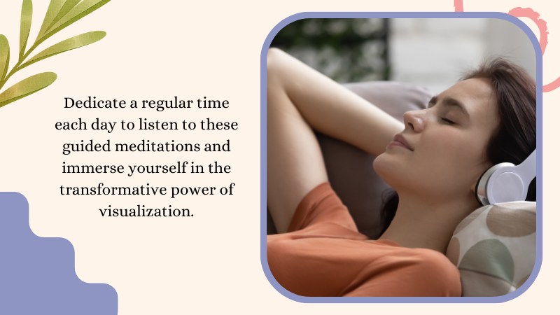 Dedicate a regular time each day to listen to these guided meditations and immerse yourself in the transformative power of visualization.