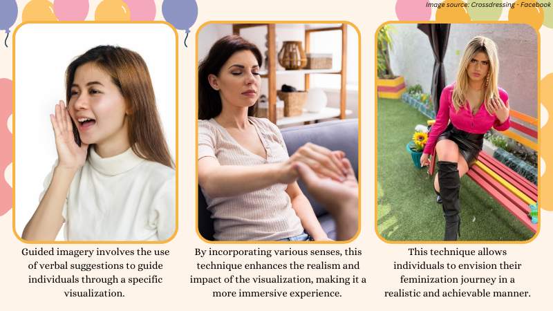 Progressive Transformation Visualization: This technique involves visualizing a step-by-step transformation into the desired feminine self.