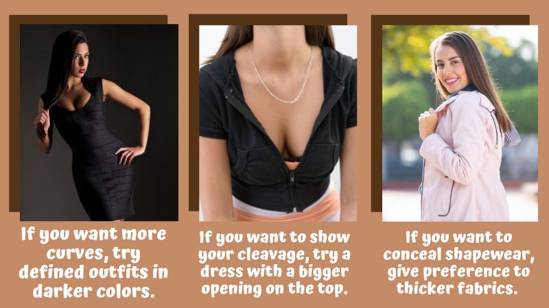 For example, if you want more curves, try defined outfits in darker colors to outline your silhouette.