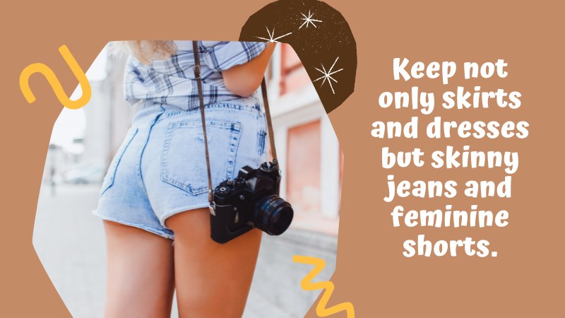 Keep not only skirts and dresses but skinny jeans and feminine shorts as well.