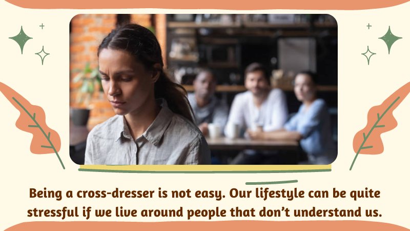 Being a cross-dresser is not easy. Our lifestyle can be quite stressful if we live around people that don’t understand us.