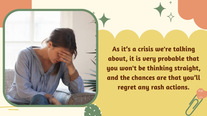 As it’s a crisis we’re talking about, it is very probable that you won’t be thinking straight, and the chances are that you’ll regret any rash actions.