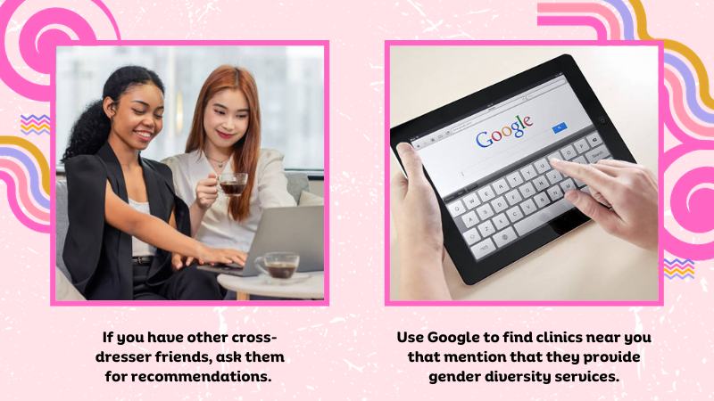 Research: Use Google to find clinics near you that mention that they provide gender diversity services.